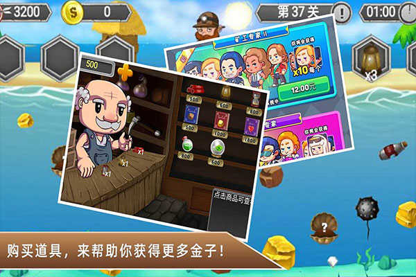 3、60个完全独特的关卡,经典的黄金矿工游戏,让人欲罢不能。