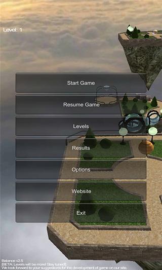 2、声音:游戏背景音乐张弛有度,每一关都有各自不同的音乐配合游戏,游戏中的声音效果更是出色,平衡球在不同的材质上滚动会有不同的音效,细节之处可见游戏非同一般。