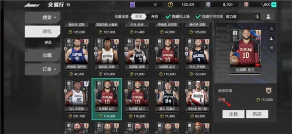 ④在背包上方,能够进行批量出售操作,可选中不同球员,同时将其上架出售,以此提升效率。