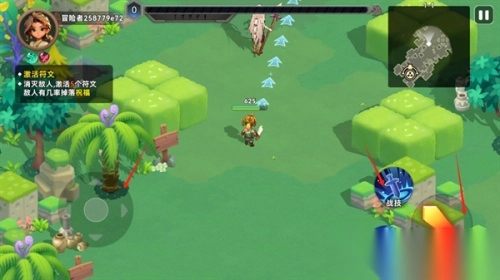 3)把左边的轮盘滑动至敌人身旁,点击右边的攻击与技能,直接行动即可。