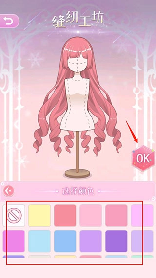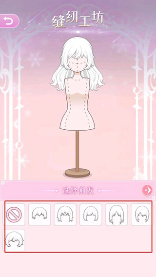 2. 当你进入缝纫工坊后,能够挑选衣服、发型以及连衣裙模板。