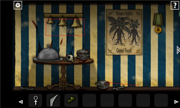 5、按照213112的顺序点击上面的这个铃铛,随后下方的餐盘便能打开,从中可获取一个眼球。