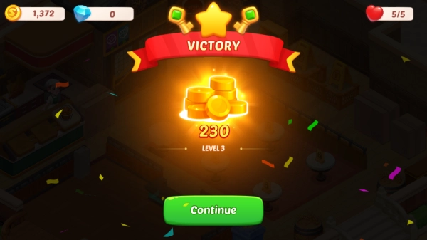2、以这一关为例,要服务好五位客人,并且获取144枚金币,才能满星通过此关。