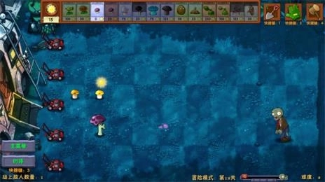 3、实际上,在黑夜模式中,完全能够以胆小菇作为开局。仅需25点阳光,就能快速让小喷菇扩散开来,而且其输出效果类似于豌豆。再搭配上手套,能将小喷菇的冷却时间缩短至原本的三分之一,这使得以胆小菇开局成为黑夜模式中发育速度最快的开局方式。