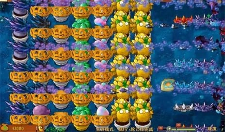 4、到了中期,要把中间四条线路全部种满阳光卷心菜。在前排布置黄油保护伞与阳光帝果,而最上方和最下方的分路,则使用大蒜来驱赶僵尸。只要将阵型铺设妥当,基本上就无需担心僵尸突破防线。