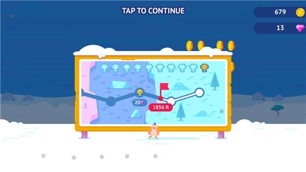 4、借助金币来升级装备,增强弹射力量,从而使企鹅能够飞得更远。