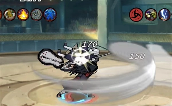 须佐能乎施展技能:先生成三个勾玉,使其呈旋转态势发动攻击,紧接着以砍击方式将攻击释放出去,击飞目标。