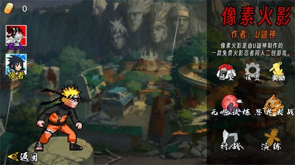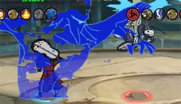 1. 以经典复古的像素风图形塑造出的一众帅气忍者,玩家能够操控这些忍者与其他动漫角色展开格斗。