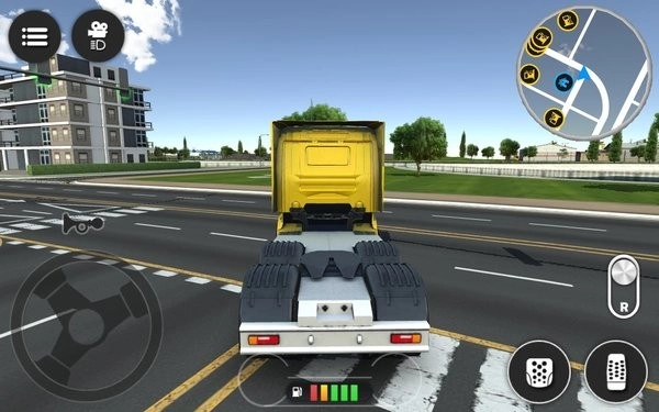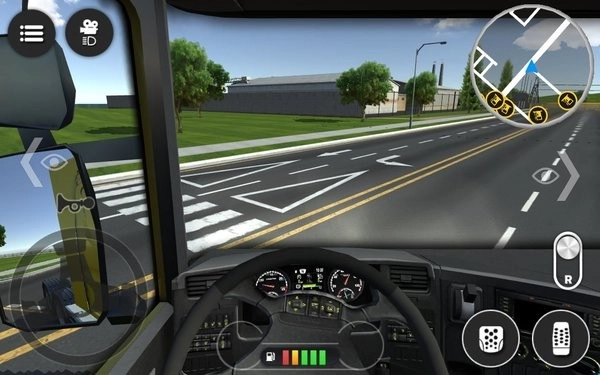 1. 游戏开始时,可依照右侧地图的引导,驾驶卡车顺着道路前行,借此熟悉方向盘、挡位等操作。