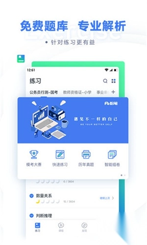 不仅如此,粉笔公考最新VIP为用户精心准备了专项训练,针对每个薄弱环节展开培训,助力用户在这一环节攻克自己的弱势科目。其内部涵盖十余年国考及省考真题,题目答案解析均由两位获得专门授权的名师进行分析讲解,覆盖5大专项与160多个考点。软件运用人工智能算法,有针对性地为用户提供题目。借助这款软件,用户能大幅提升对自身考试情况的清晰认知。若你也想解决备考阶段的疑难问题,那就赶紧下载体验吧。