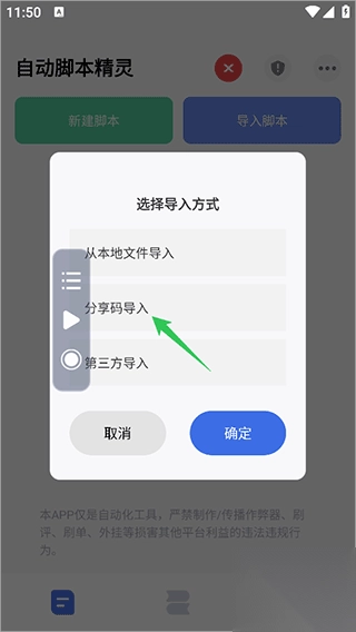 2、然后导入脚本时选择分享码进行导入即可