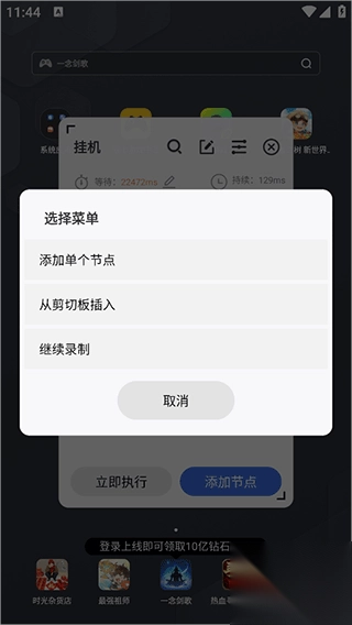 3、开启成功后即可打开游戏将需要挂机操作步骤用app录制下来