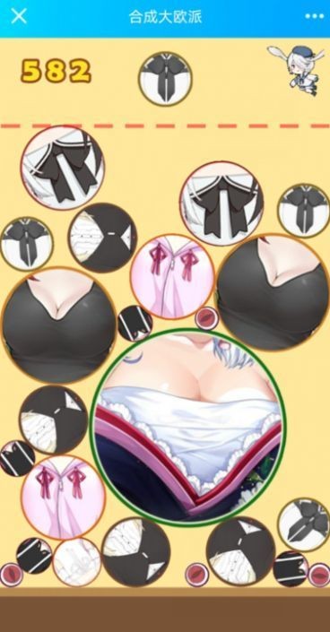 在游戏中玩家必须依据物件合成欧派,玩法类似合成西瓜;