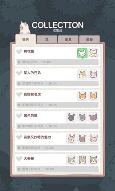 4、在收藏品里,能够看到已解锁的猫咪以及各类物品。