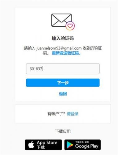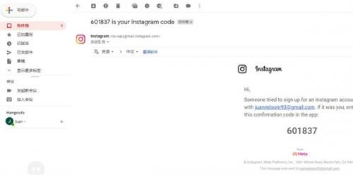 4、这个时候,Instagram会向我们的谷歌邮箱账号发送注册验证码。
