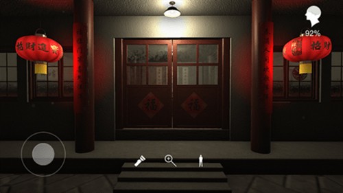 位置:来到门口如图所示的位置之后,点击查看窗户上面的线索物,将它收集到。