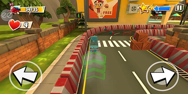 7、驾驶过程中,你会看到赛道上堆积着盒子,要尽量绕开,不然会损失生命值,也就是左侧爱心的数量。