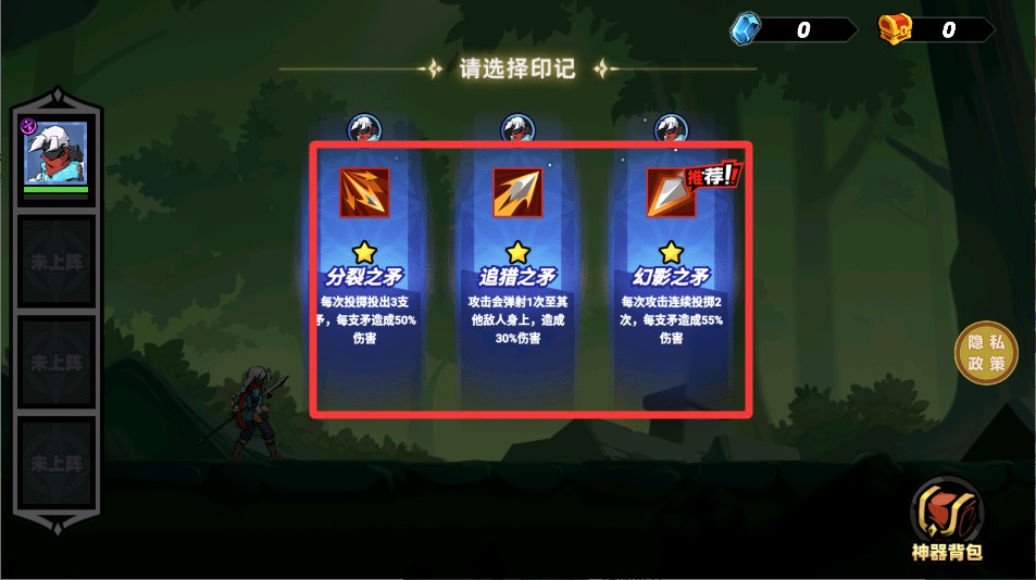 3、每次升级后会随机出几个印记让你选,优先挑加暴击或者攻速的,实在没有就选回血,反正别选没用的就行。
