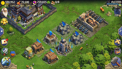 诸葛弩兵、近卫骑士、花郎射手,扶桑武士特等色兵种等你检阅指挥。各色战术配合,战争策略布局,快速摧毁,争夺资源获得胜利!更有全面战争玩法开启超大型团战PVP新时代!