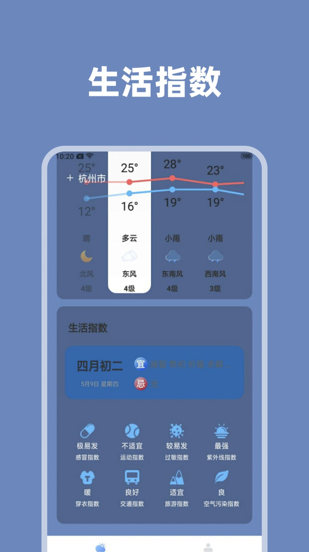 3、生活指南:会按照每天的天气情况,给您实时的贴心提示。
