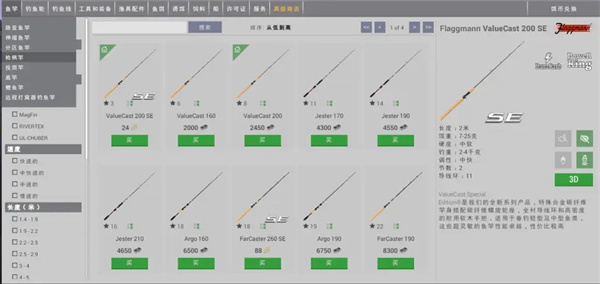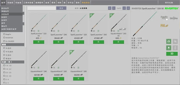 说完轮子之后再来说说线,游戏内主线有三种,单丝线,碳素线,编织线,单丝线拥有柔软不易被鱼发现,灵敏度高等特点,碳素线也称水晶线,具有更好的拉力和耐磨能力,灵敏度相较于单丝线也更高,由于透明的原因,能够适应水中的折射,使得鱼几乎发现不了的特点,适合大部分作钓使用,而编织线拥有良好的拉力值和优秀的远投能力,更适合超远投的情况下使用。游戏内的前导线分为四种,分别是单丝前导线,碳素前导线,钛丝前导线和鲤鱼前导线,其中单丝前导线和鲤鱼前导线是一次性使用,一旦拆下就没有了。单丝前导线和碳素前导线都与它们对应的主线属性一致,而钛丝前导线是用于作钓凶猛的带牙齿的肉食性鱼类,以防止鱼将前导线咬断,鲤鱼前导线是用作鲤鱼竿上所使用的。