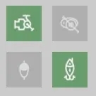 这个图左上是使用纺车轮标志,右上是使用水滴轮标志,左下是使用浮子,右下是使用路亚假饵。一般来说轮子大伙只有看着杆子拉力大小来搭配合适的轮就行,进阶后才需要根据目标对象鱼的习性来挑选各收线速度的轮。