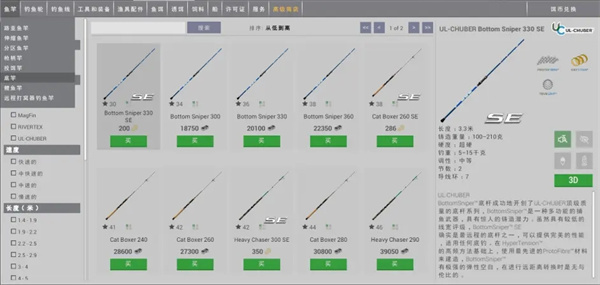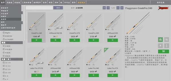 杆子讲完再来说说渔轮,一般来说渔轮没有过多要提的点,就是直柄杆搭配纺车轮,枪柄杆搭配水滴轮,如果你不知道如何配轮,就参照杆子详情里的