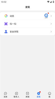 4、发现界面可以看到好友动态,还有扫一扫等功能。