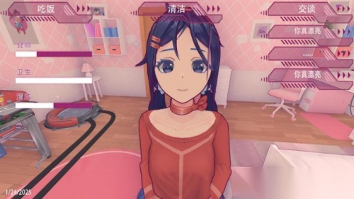 2、多种互动方式,包括喂食、打扫整理、对话交流等多种操作,每一种行为都会引发不同的反应,进而影响米塔的情绪和亲密度。