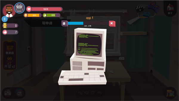 4、接下来玩家点击电脑开始写申请程序,写完之后把它卖出去即可获得第一笔资金;