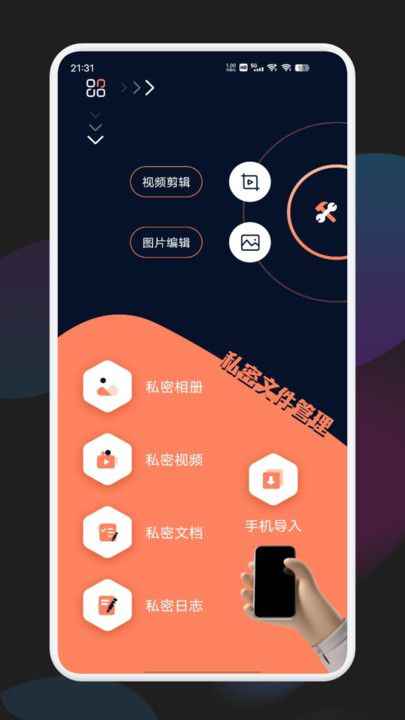 3. 还能够进行私密视频以及相册的播放,提供文档加密功能等,能分类管理手机文件。