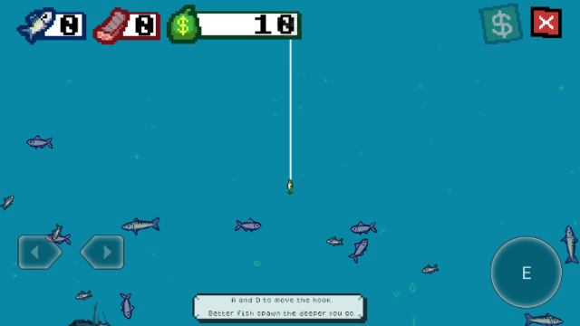 2、前往最左侧的钓鱼台,点击E键开始钓鱼。鱼线会自动下沉;通过左右方向键来调整鱼线的方向。让鱼钩碰到鱼,对其造成伤害,当伤害累积到一定程度时,就可以把鱼钓上来了。