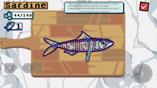 3、将你刚捕到的鱼带到沙丁鱼站,在那里你可以给你的鱼去鳞。一旦完成去鳞,按下右上角的按钮即可完成!