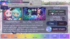 在这个小游戏中Lemo和Yuni两人会以一组舞步来示意接下来要求让玩家输入的箭头(两侧,上下左右)。