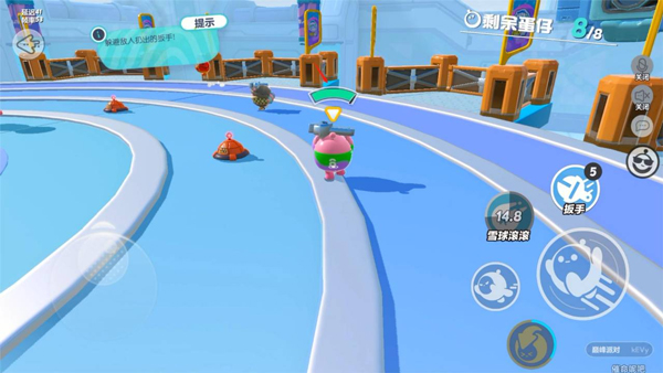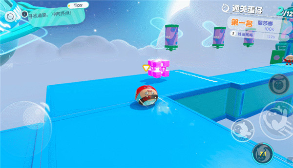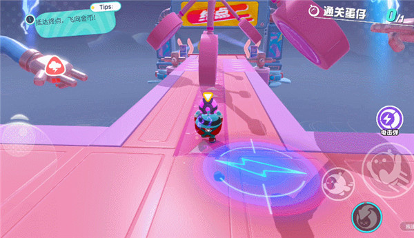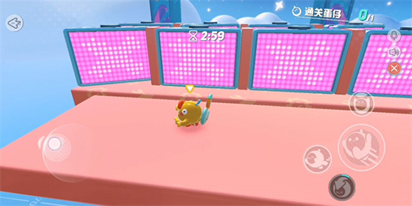 3、萌萌的蛋仔,被扔进重重关卡之内,为了赢得通关金币,争先恐后往终点冲去,他们相互碰撞。