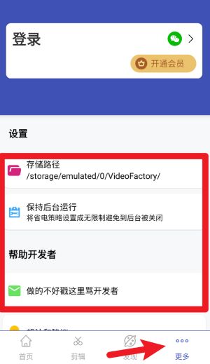 4、在“更多”页面中,您可以设置存储路径、开启后台运行权限,并提供用户反馈以帮助我们优化产品体验。