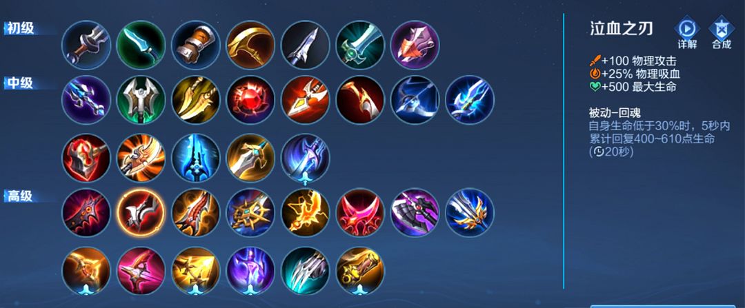 有法伤武器、法术吸血武器、法术穿透武器、法力值回复武器等,法术武器适合法师英雄。