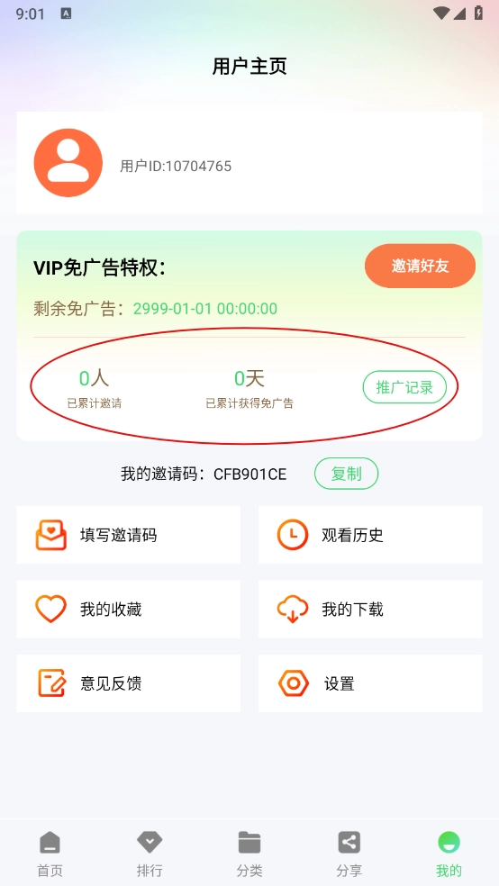 6、最后在"我的"页面,可以进行查看邀请的人数和获得的奖励。
