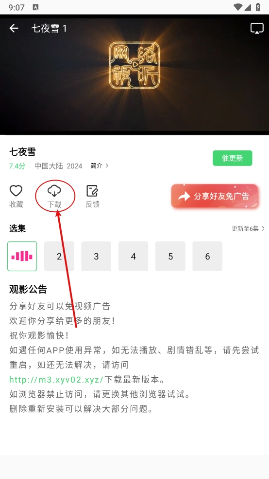 2、进入影视详情页,点击""如图所示。