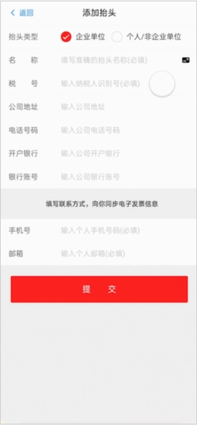 进入开票页面,点击「抬头」-「添加抬头」填写发票信息。