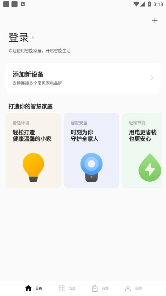 1、安装好欢太智能家居之后,打开进入欢太智能家居;