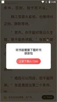 只有当小说附带语音包时,才能启用听书模式。用户可以在小说阅读页面的右上角找到菜单选项,如果看到【听】图标(如下图红色箭头所示),则表示可以开启听书功能。