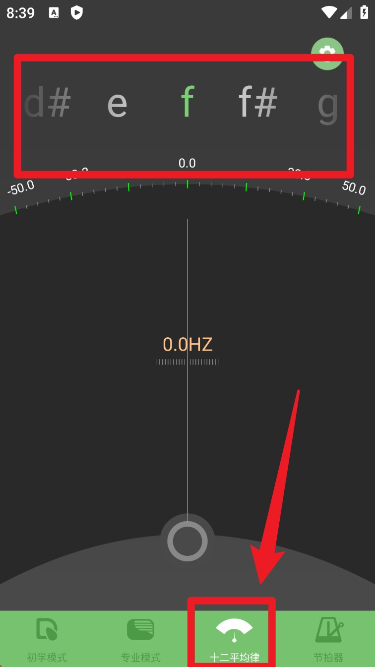 5. 若需要按十二平均律精调音高,可切换至底部的“十二平均律”模式,界面会自动识别音高并提示音名,适合进阶用户使用。