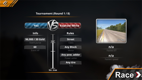5、进入后需要挑选一个地图来挑战,选好之后点击race;