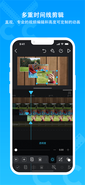 - 多层时间轴:直观,流畅的编辑界面,逐帧精确缩放,精确修剪影片。