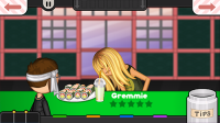 披萨店:这是最早的一家,相当简陋,得分的关键在于将食材按照中心对称的方式摆放,这需要一定的几何能力。不明白为什么一个披萨上只放两颗蘑菇还能吃得下去。汉堡店:也是比较早期的一家,得分点在于从高处把食材准确地丢到正中间,有点像盖大楼的过程,强迫症患者很容易因为瞄准太久而导致肉饼变冷。有时候客人点多个肉饼容易打乱节奏。