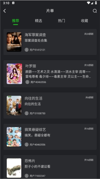 在片单页面中,还有各路大神推荐的网络热门片源资源,让你一次看个爽!
