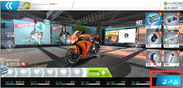 1、从车库中选择已解锁的摩托车后,进入所选模式关卡,依据地图提示完成特定目标,即可获取奖励与新素材。