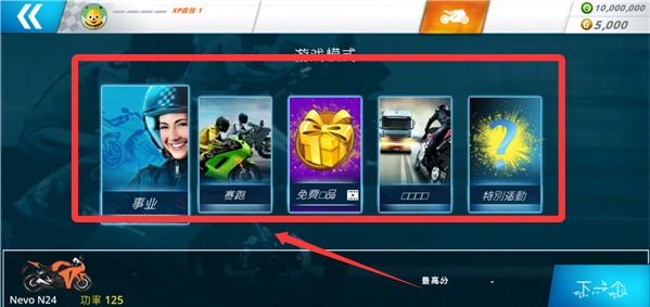 3、游戏提供了五种模式供玩家选择,其中包括充满挑战的职业任务、自由驰骋的无尽模式、令人紧张的计时赛以及竞争激烈的多人竞速。