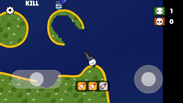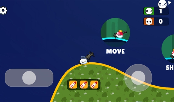 2、通过滑动右侧按钮,即可实现瞄准与发射炮弹的操作。当发现想要击败的敌人时,就可以发射炮弹。